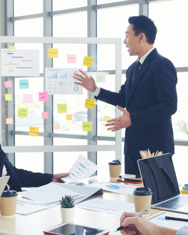 目標を明確にし、戦略や計画を立て目標達成をサポートする。